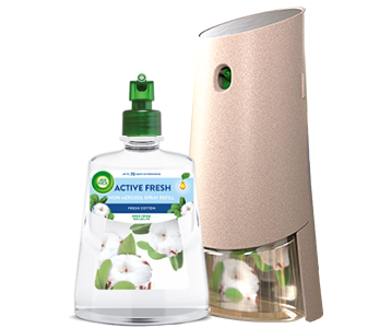 Air Wick 24/7 Active Fresh er Air Wicks første automatiske luftfrisker uden aerosol. Vores nyeste luftfrisker er tilsat naturlige æteriske olier, som giver en langvarig duft, der fjerner generende lugte i op til 70 dage. Fjern lugt fra kæledyr, badeværelse og køkken med dit valg af 3 indstillinger for intensitet samt en øjeblikkelig boost-knap.